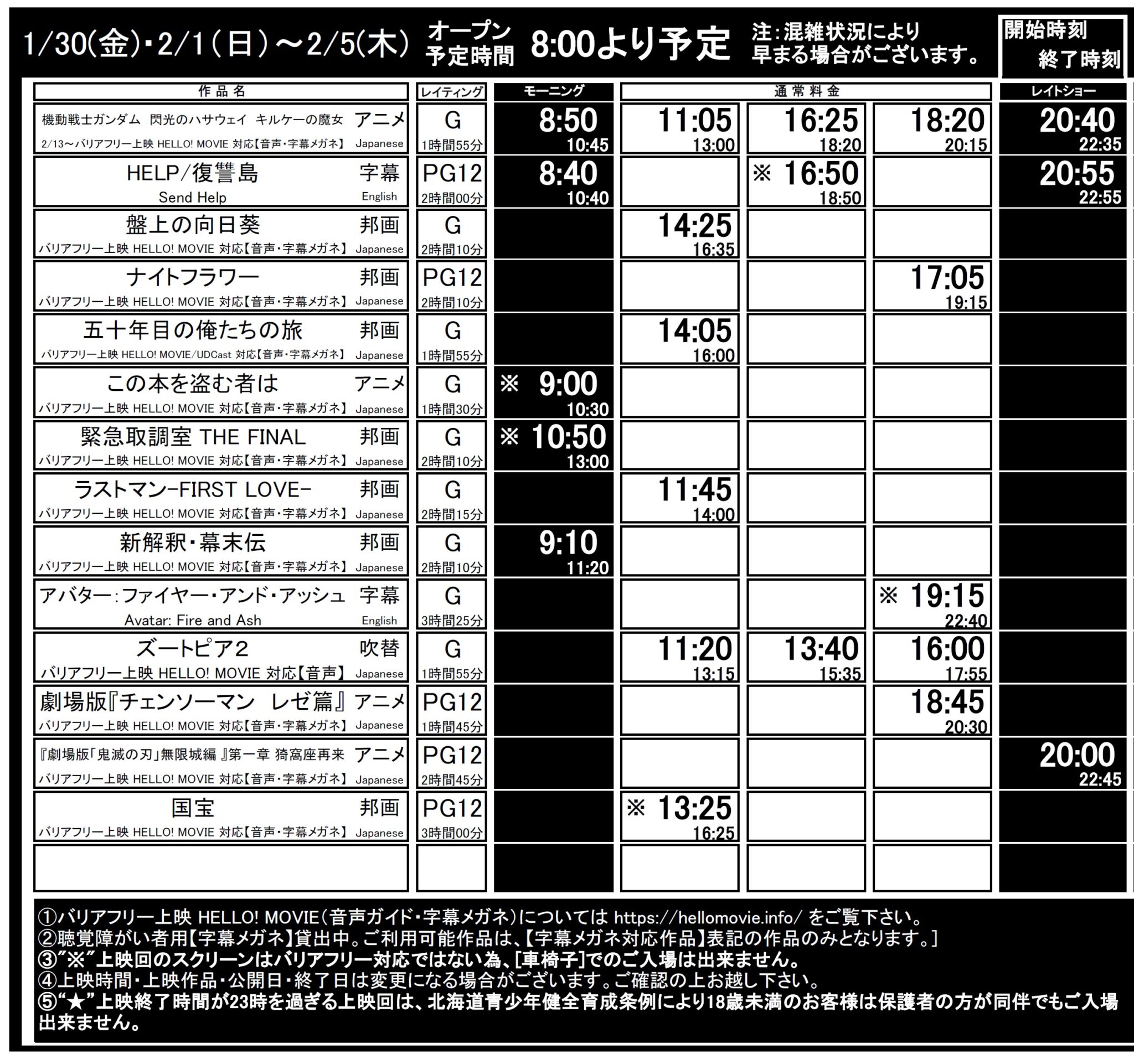 函館1/30(金)~2/5(木)上映時間はこちら(毎週火曜更新)